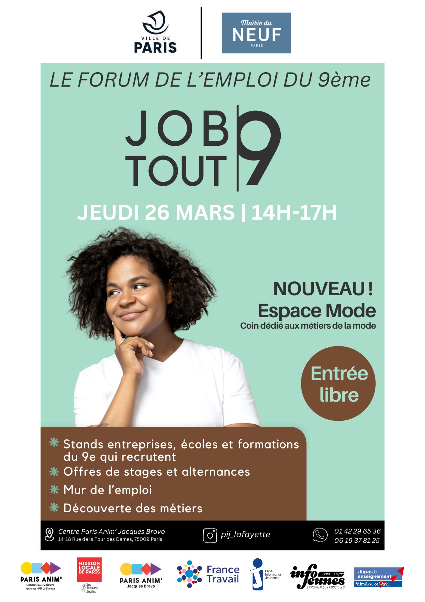 Cette année, le Forum de l’Emploi du 9e « Job Tout 9 » revient le jeudi 26 mars, de 14h à 17h, au Centre Paris Anim’ Jacques Bravo.