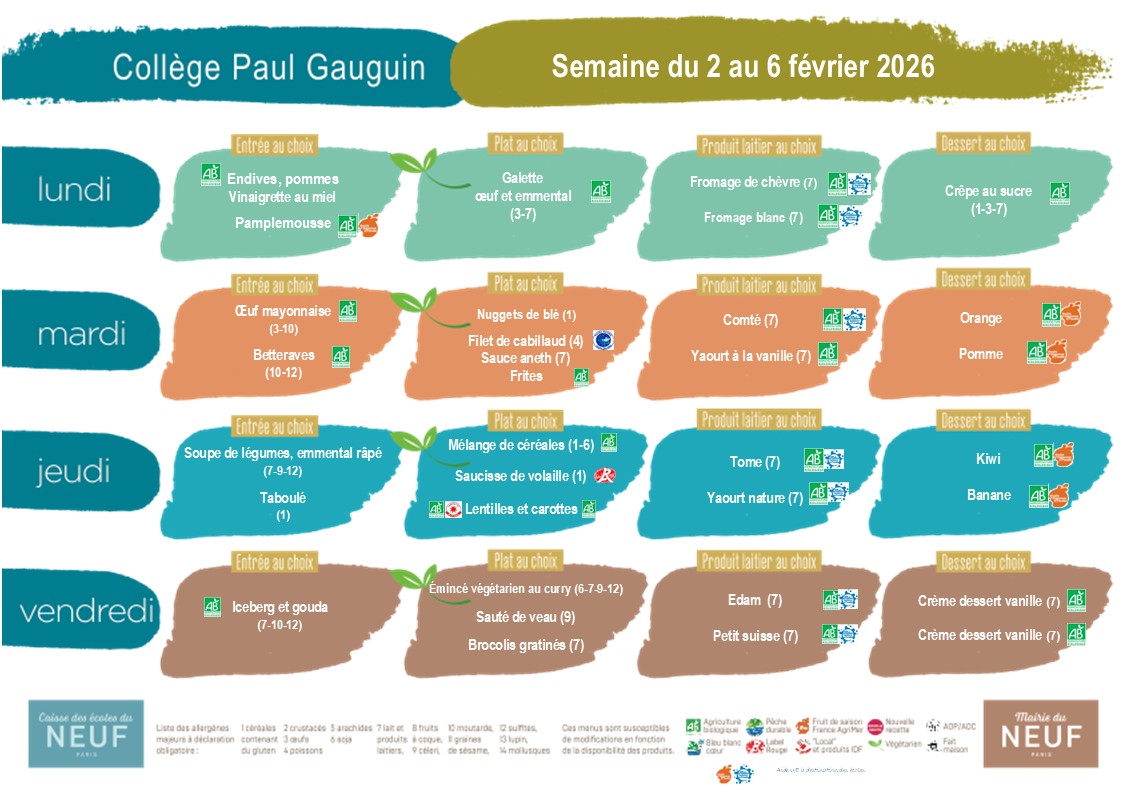 Menus du collège Paul Gauguin