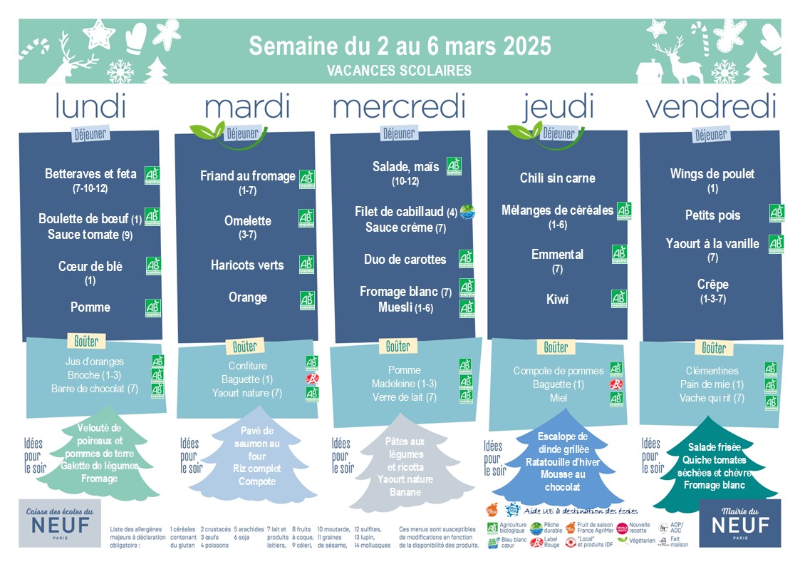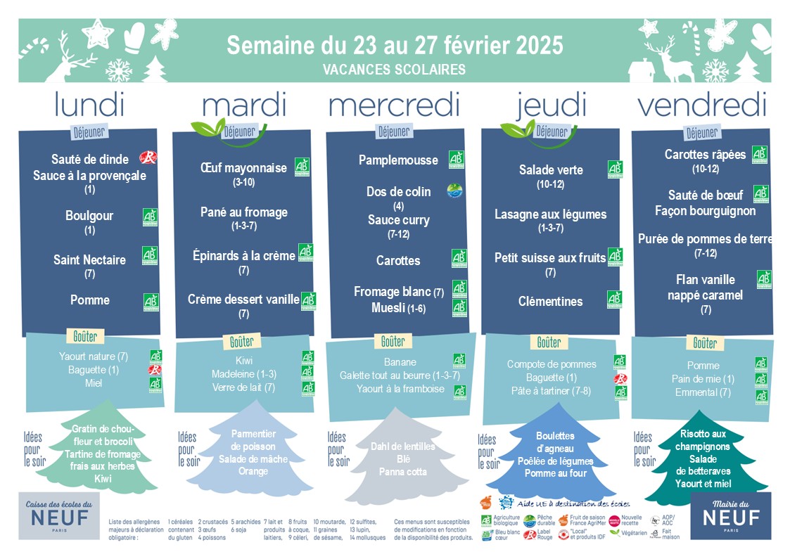 Menus des vacances scolaires